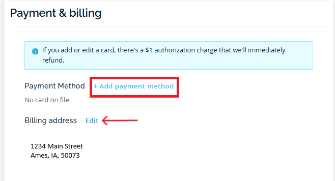 Within the same Payment & Billing section, locate Billing Address and click Edit.