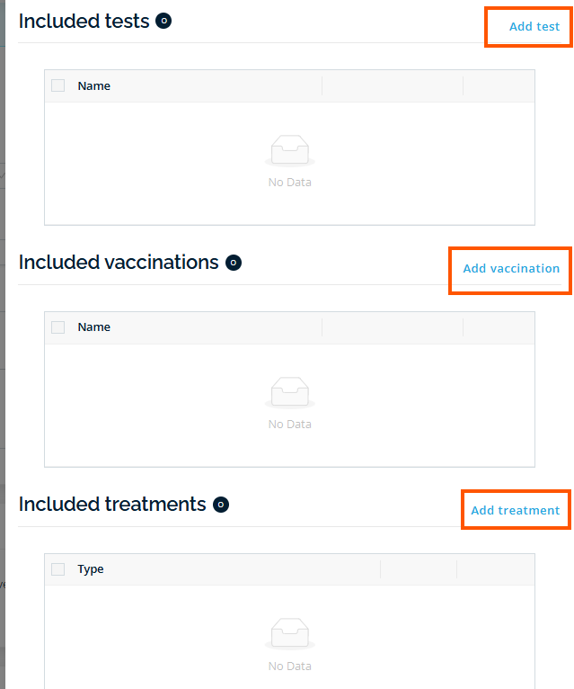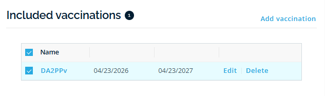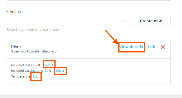 Alternatively, click Select under the animal's name beside Included tests or Included vaccinations.